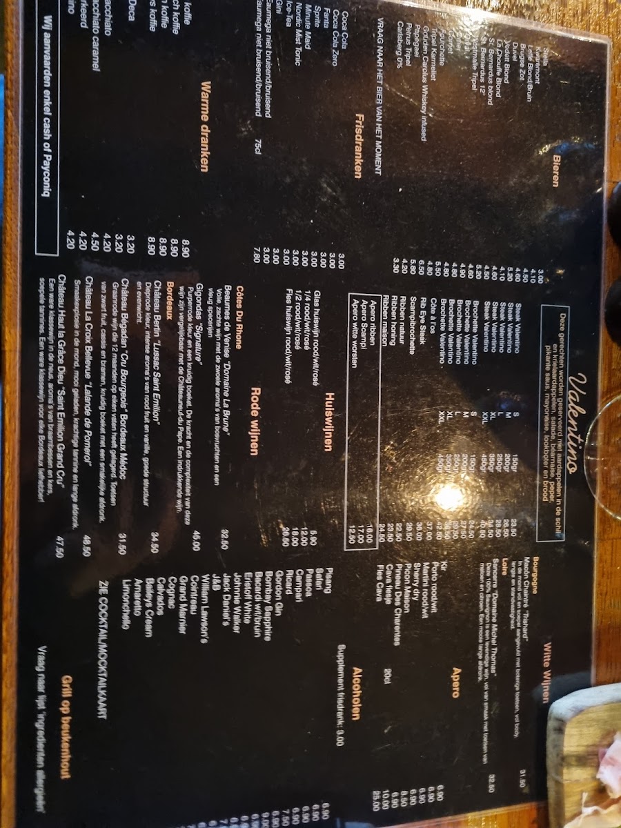The menu at Grill Valentino reflects a clear focus on grilled specialties and generous portions, with a balance between indulgent mains and lighter accompaniments. Meat lovers will immediately notice signature cuts such as Steak Valentino, Filet Pure XL, and the impressive Filet Pure XXL 450 Gram, each emphasizing premium beef and precise grilling that highlights natural flavor rather than excessive seasoning. For those who enjoy sharing or savoring richer textures, Cote A Los and Salade Accompagnant La Côte À L'os work together as a complete experience, pairing a robust, bone-in cut with a fresh, complementary salad. Variety is further strengthened by Brochette Filet Pur, offering a slightly more playful presentation while maintaining the same quality of meat. The menu also caters to comfort cravings with Spare Robs Honey, delivering a sweet-savory glaze that contrasts nicely with the restaurant’s classic grilled profile. To begin or unwind, Apero options set a relaxed tone, while non-alcoholic choices like Mocktail ensure everyone feels included at the table. The experience closes smoothly with Ice Cream, a simple but effective dessert that rounds out a hearty meal without overwhelming it. Overall, the menu feels cohesive and confident, focusing on quality ingredients, clear portions, and familiar flavors executed with consistency, making it easy to understand what the restaurant does best and why its grill-centered identity stands out.